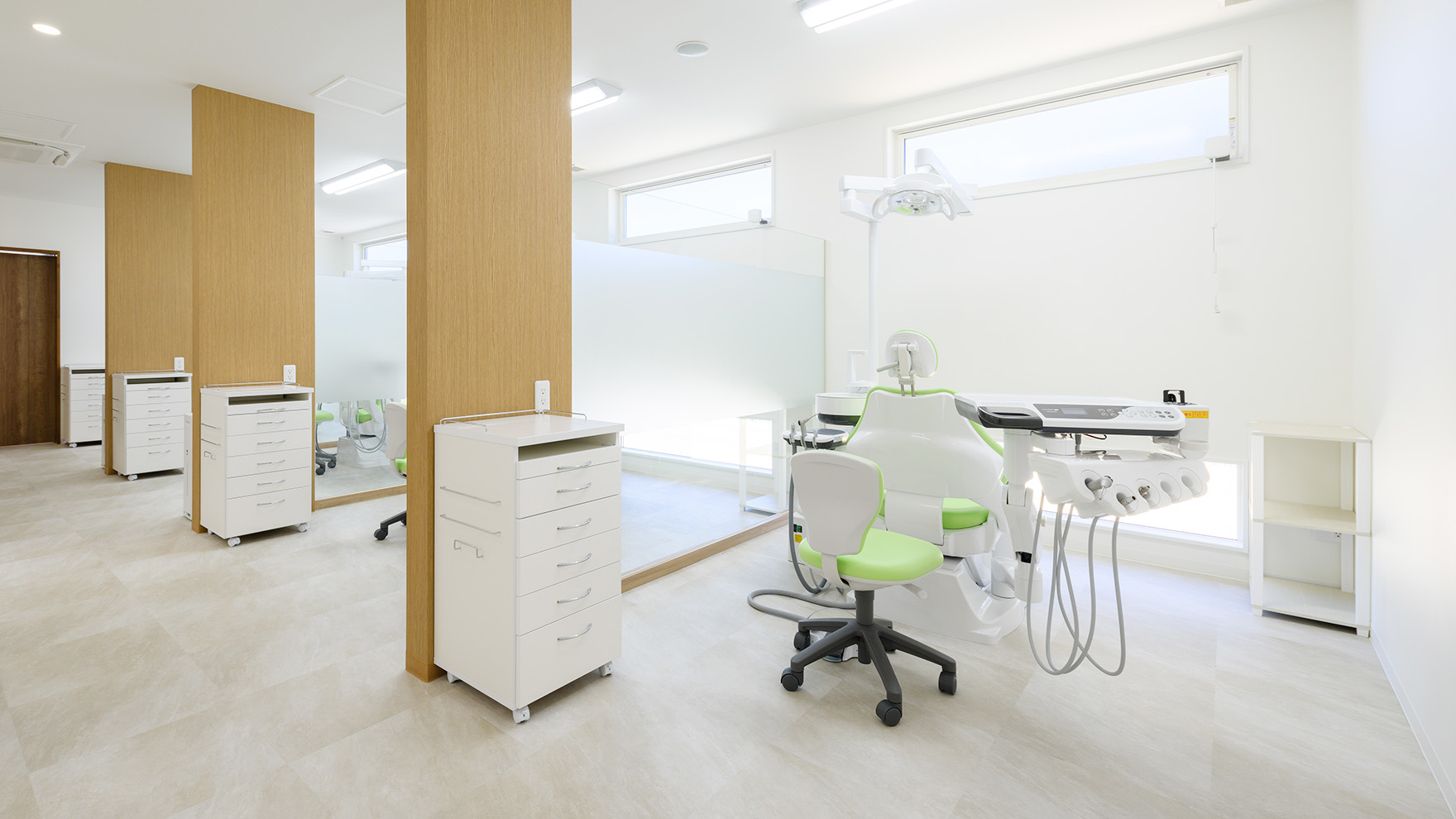 バリアフリー設計の院内は移動しやすく、広い診療スペースで車イスのまま治療が可能です。